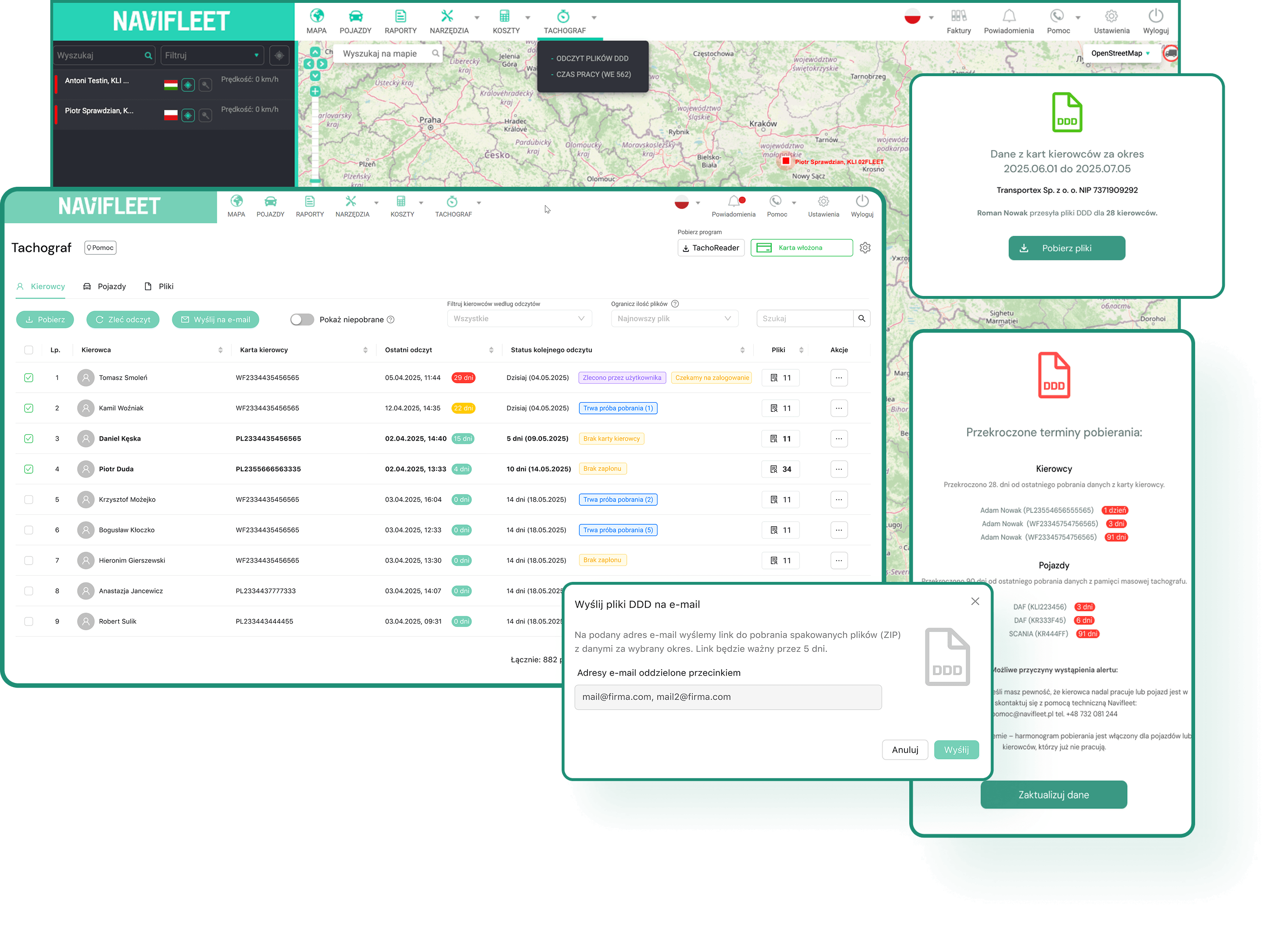 Poznaj nasz system do monitorowania floty z funkcją zdalnego tachografu.